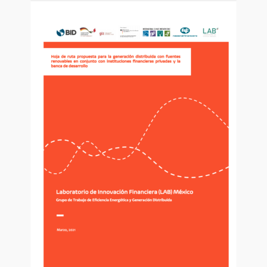 Desde noviembre del 2019 el Laboratorio de Innovación Financiera (LAB) en México, un proyecto conjunto del Banco Interamericano de Desarrollo (BID), de la Asociación de Bancos de México (ABM) y del Consejo Consultivo de Finanzas Verdes (CCFV), y en alianza estratégica con la Agencia Alemana de Cooperación al Desarrollo Sustentable en México (GIZ), y con la participación de Nacional Financiera S.N.C. (NAFIN), llevaron a cabo un proceso participativo con actores clave para proponer una hoja de ruta que facilite el despliegue del financiamiento a la generación distribuida de electricidad con fuentes de energía renovable, conjuntando la participación tanto de integradores, banca comercial, instituciones financieras no bancarias, así como la banca de desarrollo.
