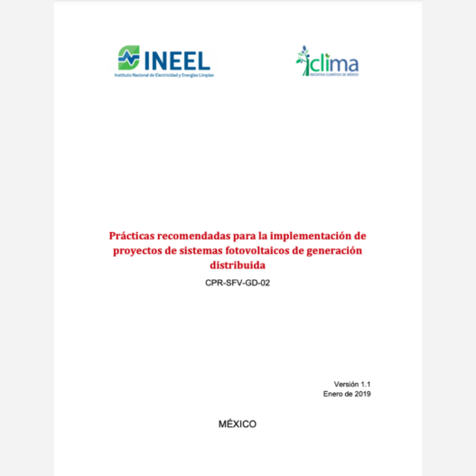Este documento presenta un compendio de prácticas recomendadas relativas a la implementación de proyectos de Sistemas Fotovoltaicos de Generación Distribuida (SFVGD) 1 , con capacidad menor que 500 kWc.a., para su aplicación en el contexto de México.